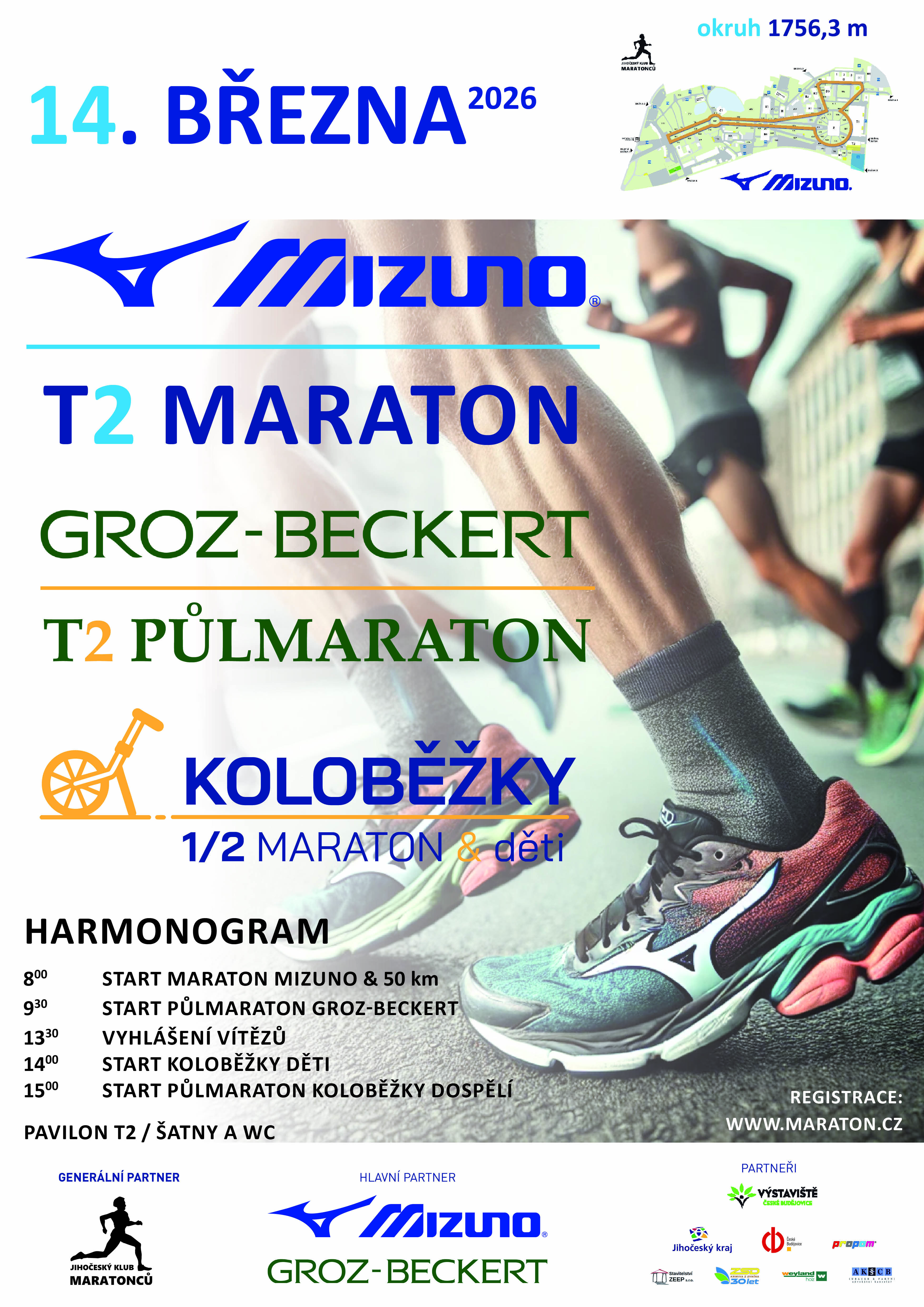 8:00 h Start Mizuno maratonu, štafet a závodu na 50 km. (Limit 6 h)